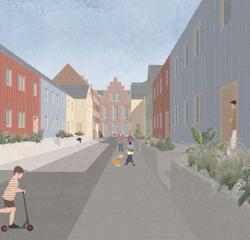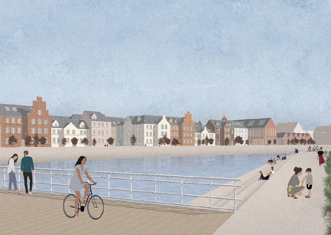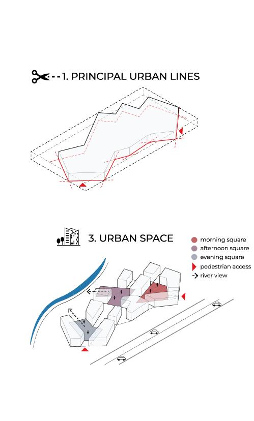 employs principles of Critical Reconstruction to restore its historical connection to the river. The design blends tradition with contemporary needs, reconnecting the landscape to the historic center through parceled blocks and characteristic Greifswald features. It incorporates varied facade geometries, local colors, and materials, keeping most buildings to four stories while introducing a prominent multifunctional center that reinterprets Brick Gothic architecture.