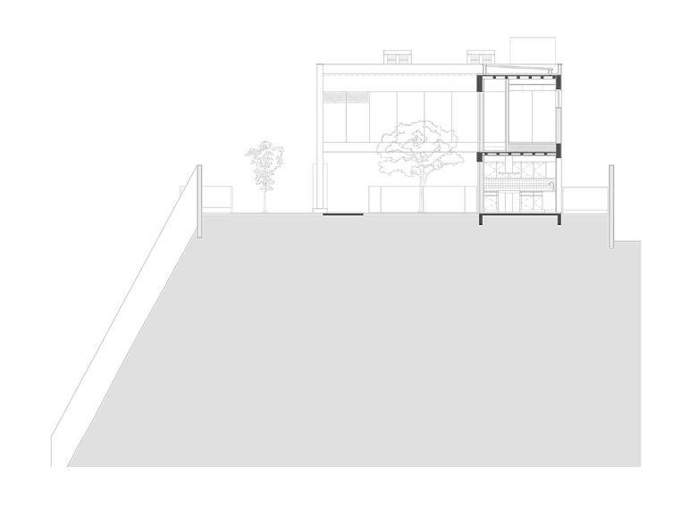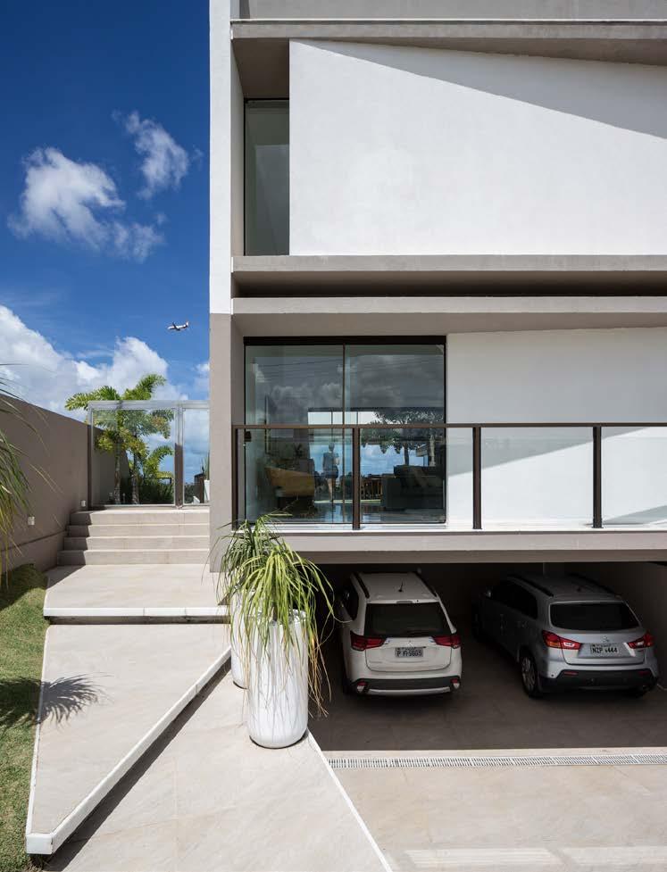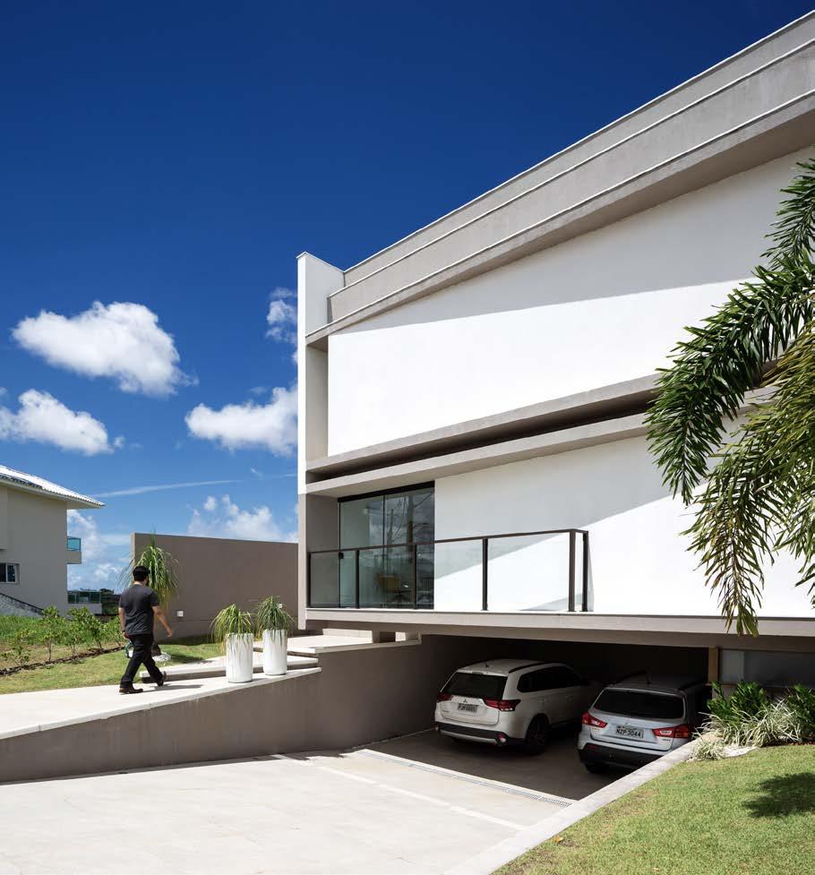 The house, located in a private condominium in Salvador of Bahia, Brazil, was designed to meet the needs of a young couple with a daughter. The terrain had a trapezoidal shape, with a front of 13m, 40m sides and a 24m back. The topogra phy was more favorable to the implantation of a building in a range of 20m from the front of the lot, since in this section the variation between levels was of 1,40m of height, the result of a slope that turned into a small plateau. The second half of the terrain had a slope of 10 meters height, with an average slope of 35%.