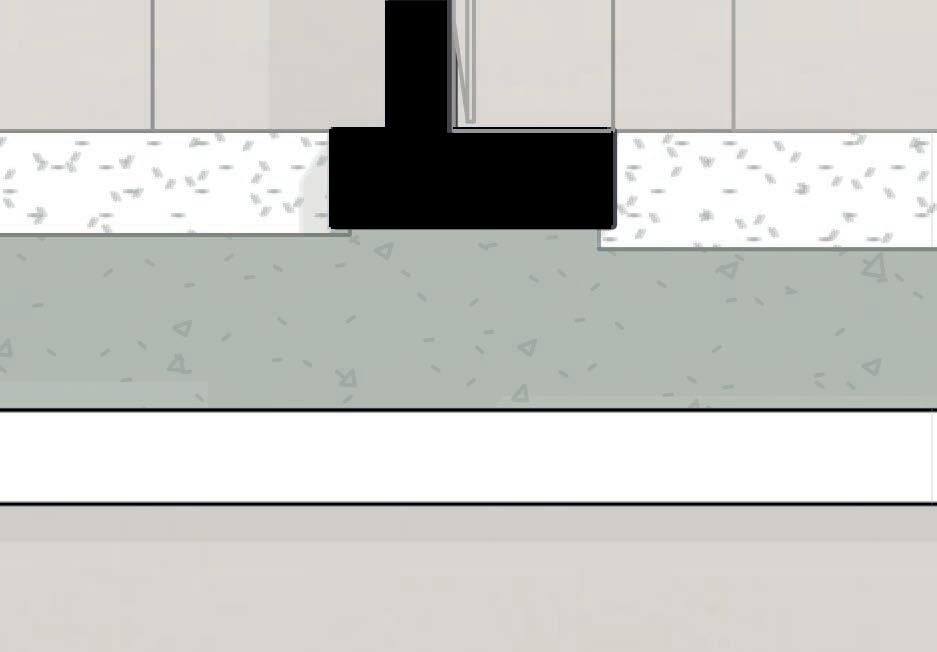 rating the starting point of a long L-shaped bench that would accompany the 2 white walls of the living room, starting from the access and ending in the window of the old balcony.