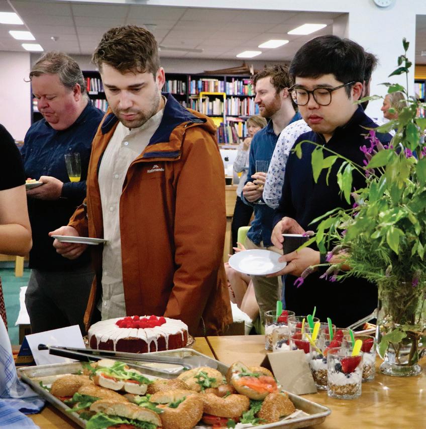 (left) and Laly Coignard (second from right) enjoy a taste of Aussie treats with students and teachers at the French bilingual class party.