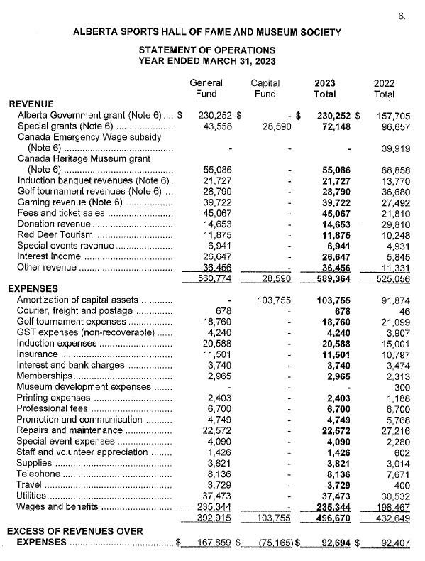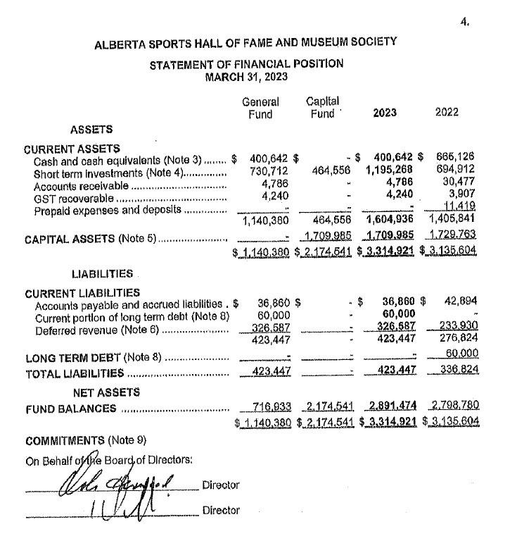 Please see the audited financials from the Alberta Sports Hall of fame andMuseumSocietyforthe2022-2023fiscalyear.