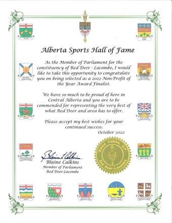 The result of all this hard work was that the Alberta Sports Hall of Fame wasoneof3finalistsfortheRedDeerChamberofCommerceBusinessof theYearAwards. Theseawardsarenominatedandselectedbymembers of the Red Deer Business Community. It showed that all our hard work is beingnoticed.