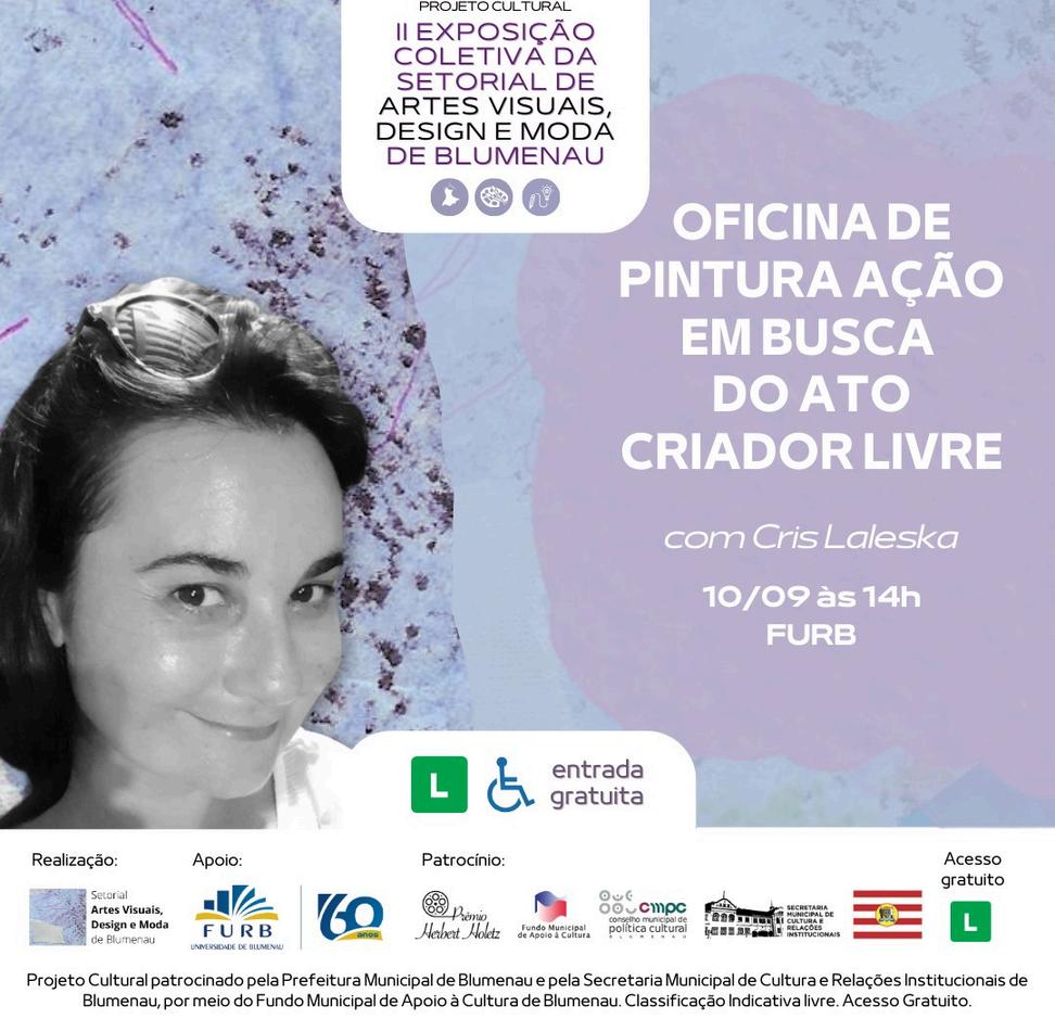 Cristina Gilinski Machado. Artista Visual e Arte Educadora leciona em escolas públicas desde 2011. Possui formação com Licenciatura Plena em Artes Visuais pela Uniasselvi (2015). Participa do Coletivo Laboral Multicultural de Experimentações e Intervenções Artísticas (COLMEIA). Realizou exposições em diversos eventos culturais, incluindo a Fundação Cultural de Blumenau, SESC, FURB, e outros. Participou do Grande Evento e Polinizações do Coletivo Colmeia (2012-2024). Contemplada pela Lei Aldir Blanc nos anos de 2020 e 2021. Ilustrou o livro “Às margens do Rio Duna“, de Camila Gebin, pelo Programa Municipal de Incentivo à Cultura de Imbituba (2024).