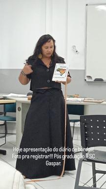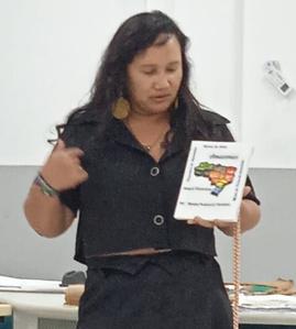 Rosãngela Teixeira Nunes. Artista que colabora com a Universidade Federal de Santa Catarina (UFSC), campus Blumenau. Integra o Coletivo Colmeia e já participou de eventos da UFSC, como o Abril Indígena, desenvolvendo um projeto de Educação em Direitos Humanos, que refletiu sobre as relações étnico-raciais por meio das artes plásticas. O projeto também contou com a participação de povos indígenas locais da “Aldeia Urbana” de Blumenau.