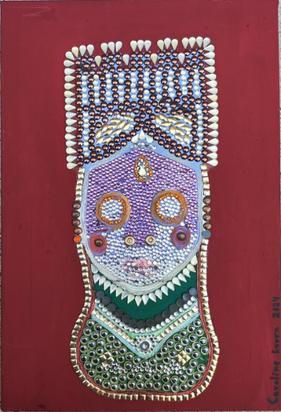 Mista sobre papellão (com miçangas, strass, botões, canetas diversas, tinta PVA, tinta têmpera, tinta acrílica, linha e cola).
