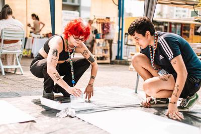 “Lançados no mundo, traçando direções”. Impressão em papel outdoor