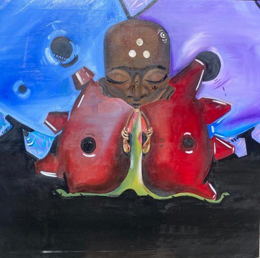 Técnica utilizada: Pintura com tinta acrílica e grafite sobre tela.