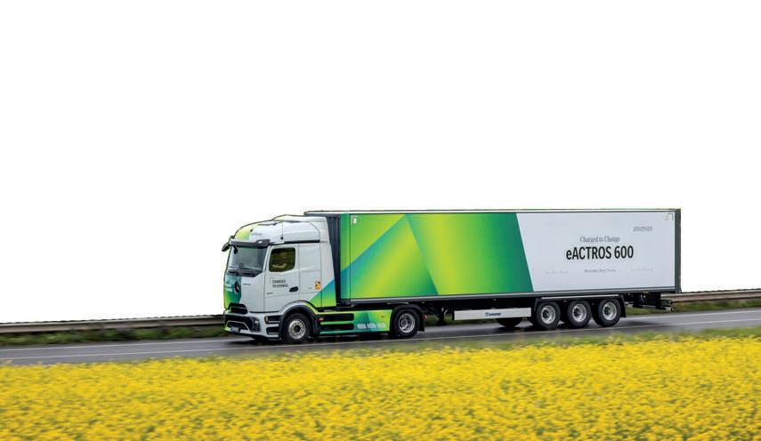 ha due pacchi batteria per una capacità totale di 414 kWh, quindi un minor peso che si traduce in un significativo aumento del carico utile: 3 tonnellate in più del fratello maggiore 600 e più competitivo con gli Actros diesel sul fronte della capacità di trasporto. In termini di autonomia, può raggiungere i 480 km a carico parziale e circa 330 km in operazioni tipiche con semirimorchio. Sul fronte ricarica entrambi i modelli supportano lo standard di ricarica rapida CCS2 fino a 400 kW, mentre il 600 è predisposto per il Megawatt Charging System che riduce i tempi di sosta, consentendo di portare la carica dal 20% all’80% in circa 30 minuti, contro i 70 minuti dal 10% all’80% con il CCS2 e i 46 minuti dell’eActros 400.