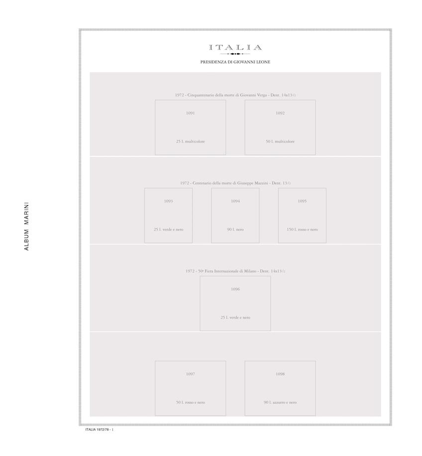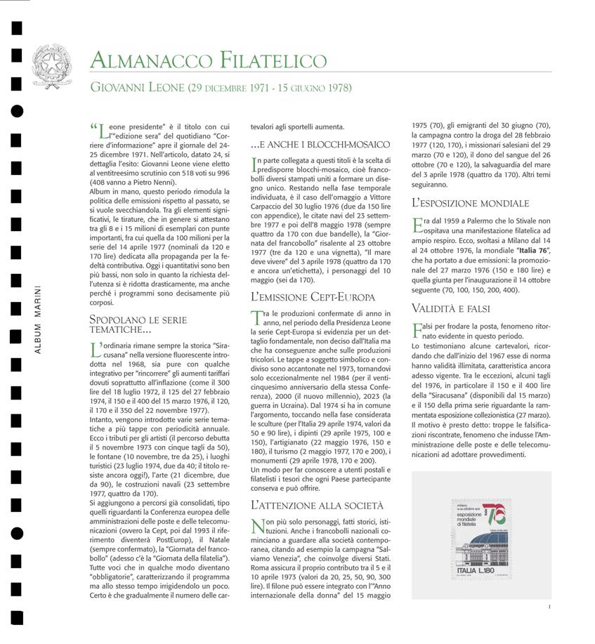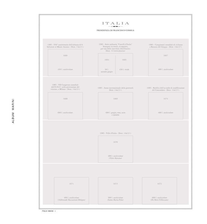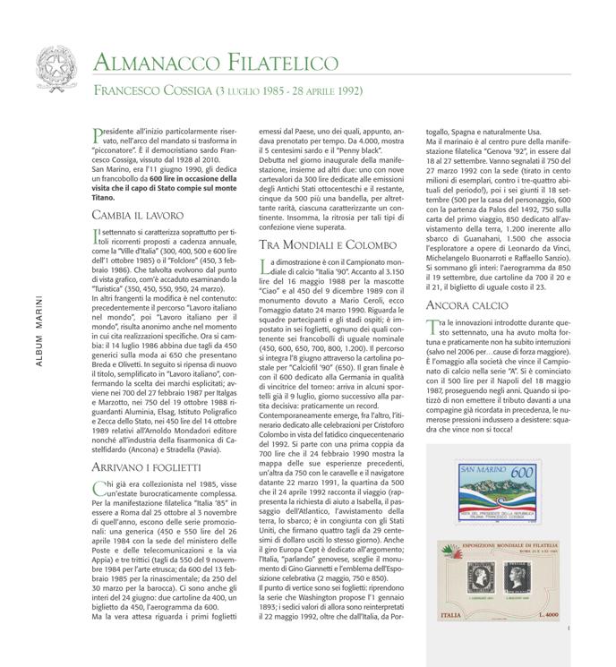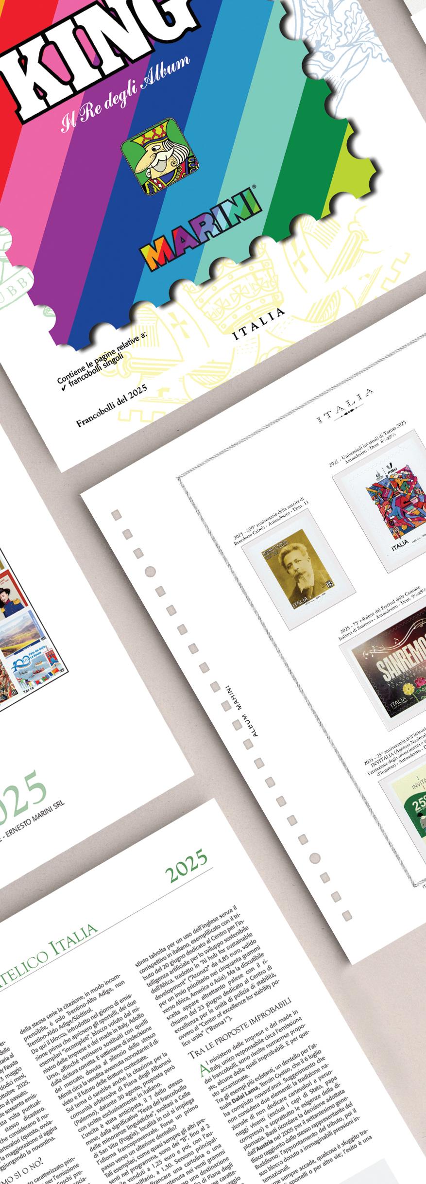 Gli Album Pertini, Cossiga e Scalfaro sono ora arricchiti dall’Almanacco Filatelico e da note tecniche, come nei tradizionali aggiornamenti King versione Classica e presentano taschine a listelli trasparenti per conservare anche sottotipi, varietà, bordi e appendici.