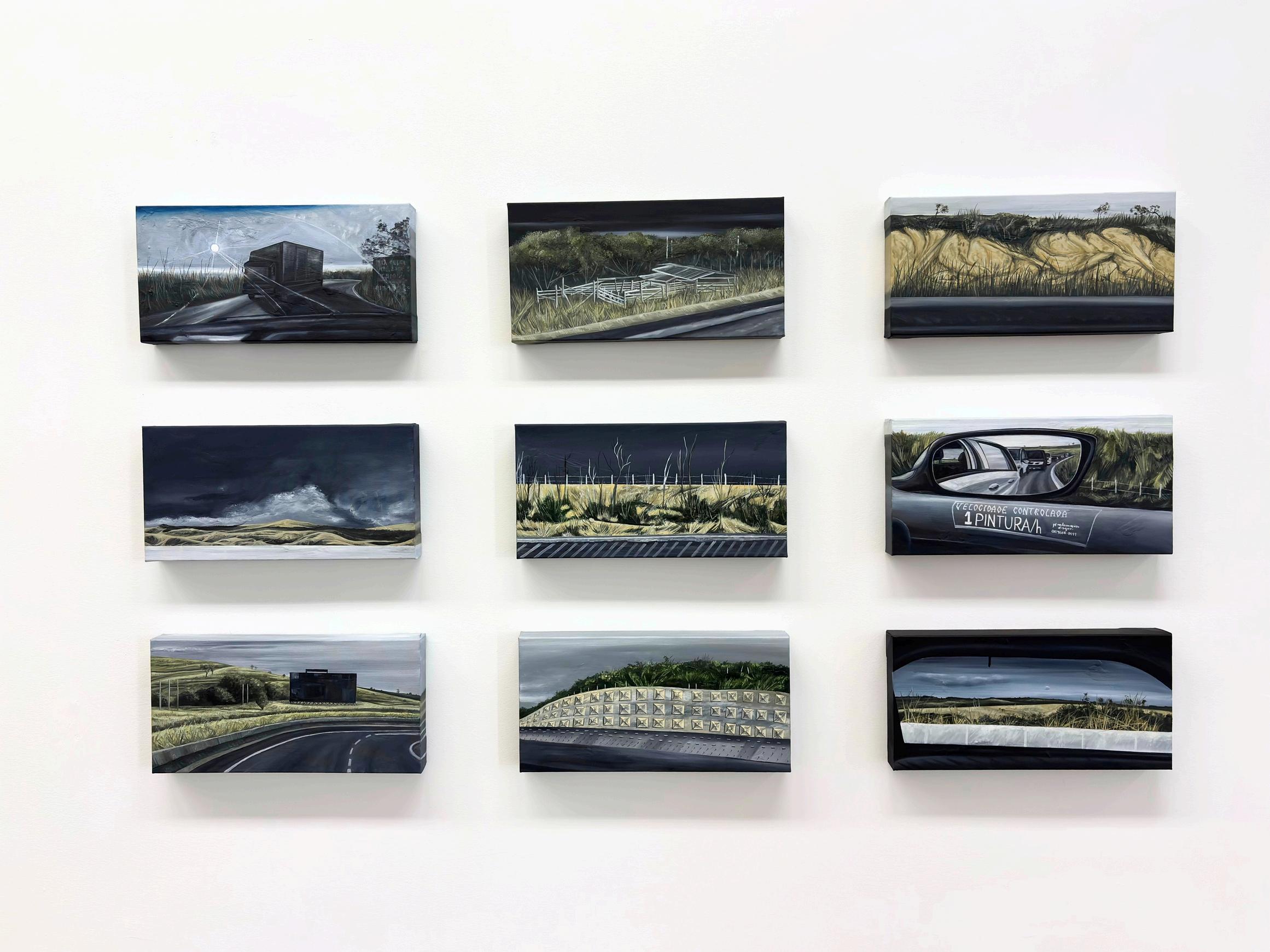 Óleo e encáustica fria sobre tela. 20 x 40 cm. 2025 (cada). Oil and cold encaustic on canvas. 20 x 40 cm. 2025 (each)