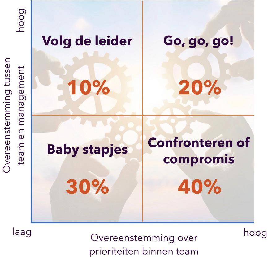 Berkelaar voegt daaraan toe dat je kunt nadenken over andere vormen. Niet iedereen hoeft in het kernteam te zitten, daar kan je ook inspraak voor organiseren of werkgroepen met veel eigen zeggenschap.