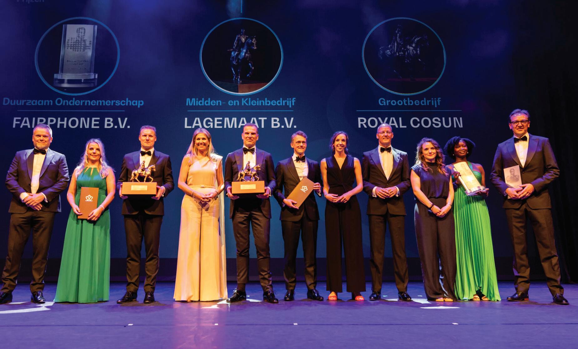 Hoogtepunt was uiteraard de bekendmaking en de uitreiking van de prijzen aan de drie dolgelukkige winnaars. Agrarische Coöperatie Royal Cosun uit Breda werd winnaar in de categorie Grootbedrijf. Lagemaat Sloopwerken uit Heerde werd verkozen tot beste mkb-onderneming van het land en het Amsterdamse Fairphone won de Plaquette voor Duurzaam Ondernemerschap. Koningin Máxima feliciteerde de drie winnaars,