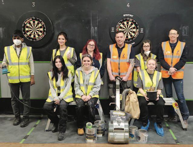 The volunteers updated the youth darts arena and adults darts space. Other refurbishments included transforming the main entrance area, sanding the wooden flooring and repairing the damaged walls, doors and skirting boards ahead of them being painted.