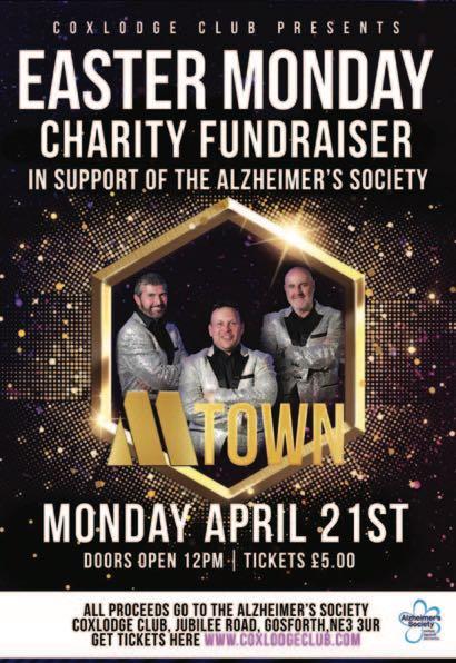 The Coxlodge Club in Newcastleupon-Tyne will be hosting a major charity fundraiser for the Alzheimer’s Society on Easter Monday.