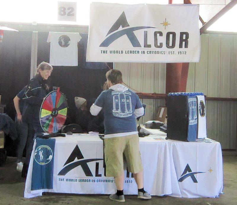 Alcor meanwhile found itself involved in the FDGD, though of course we challenge the dictum that frozen people are necessarily “dead” – we are hoping for their revival after all, not excepting Bredo himself. But now there was a unique opportunity to reemphasize cryonics and thereby promote our theme of life over death. Accordingly, Alcor had a booth, alongside others, in Fairgrounds, “Barn W” at the 2024 festival, with plans to continue in subsequent years. People could spin a wheel and win a prize, a T-shirt, a small rubber brain, magnets, a