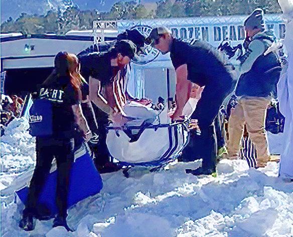 Alcor Deployment and Recovery Team (DART) having just placed “patient” in “ice bath,” said patient being generously modeled by Bredo look-alike, above.