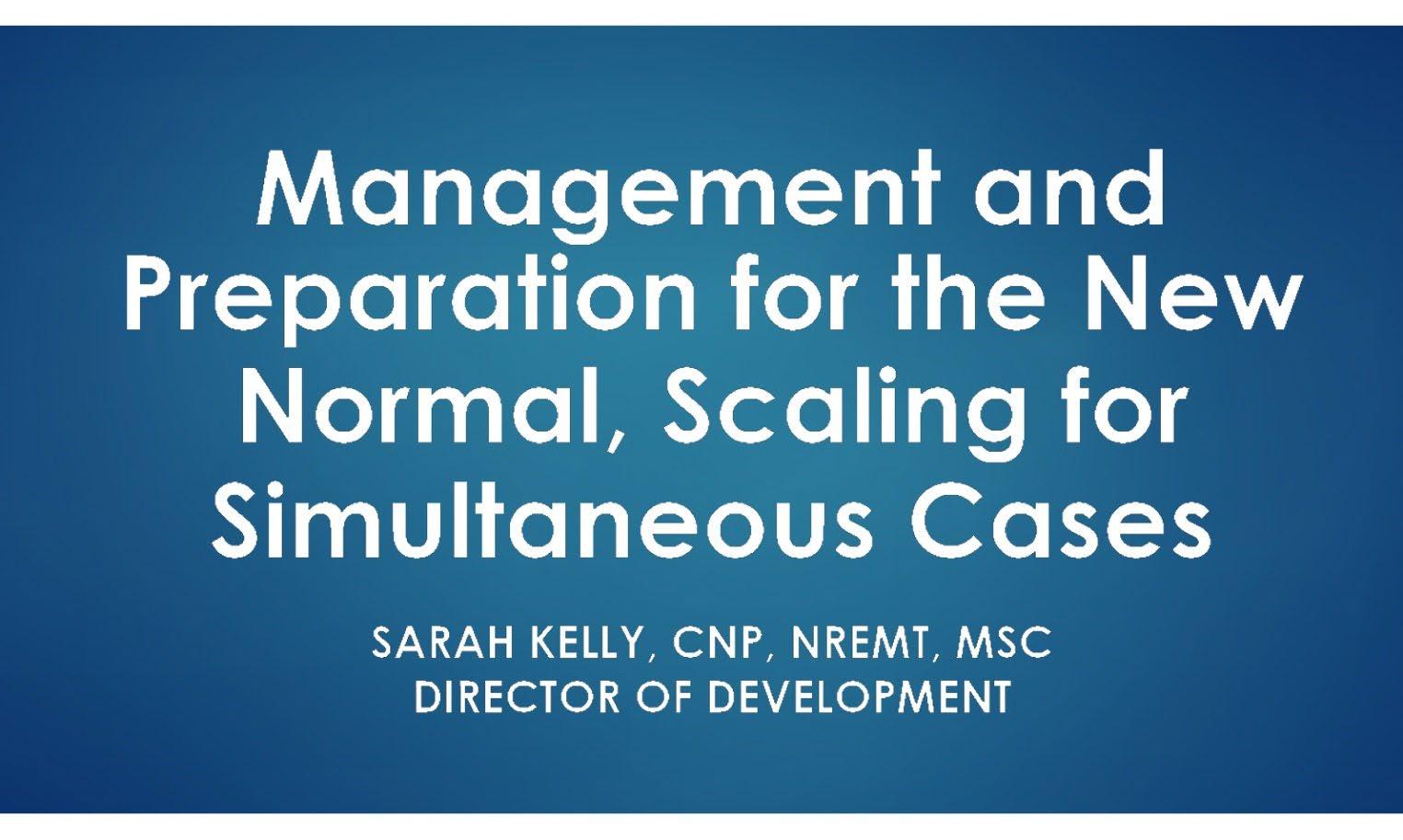 32 Management and Preparation for the New Normal Sarah Kelly addresses the problem of what to do if, as seems likely in the future, we will often be doing multiple cases at once.