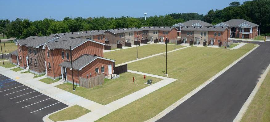 • Heritage Village, with the existing front drive and median flexibly converted into a pedestrianized “front lawn” for the neighborhood, as well as an improved parking lot and new shade trees
