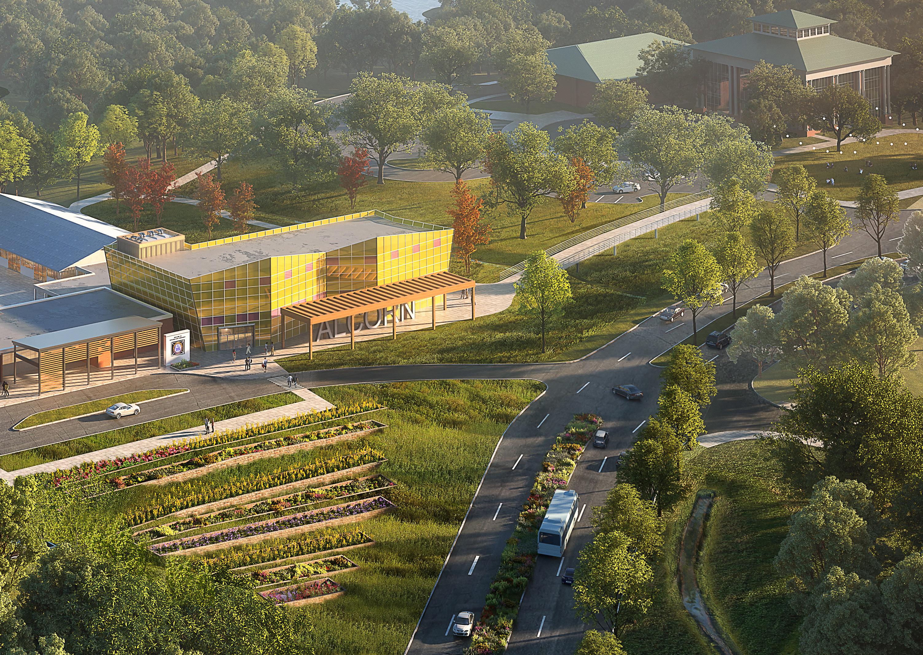 • Enhancement of the rural character of the campus, encouraging active use of the beautiful grounds. The landscape will be activated by improving existing vegetation, planting new shade trees, expanding the arboretum, and expanding the system of natural trails. In tandem, the visibility of Alcorn’s agricultural research and innovation initiatives will be improved through the new Welcome Center and enhanced walkability across campus.