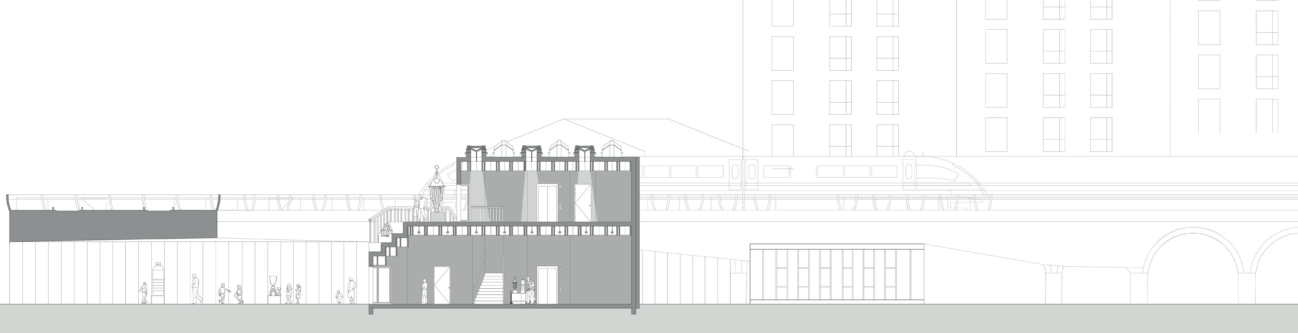 1. Dividing the buildinng into two areas to activate Norman rd, having the exhibition space under the viaduct as the connecter.