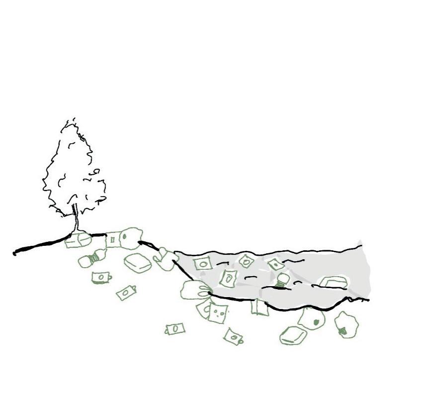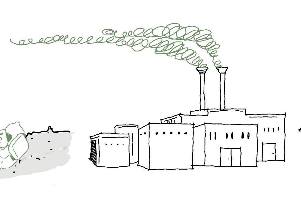 CONCEPTUAL COLLAGE Created initially by hand skecthes and later on refined using Photoshop. ENVIRONMENTAL STRATEGY [Original scale 1:50] ADALGISA CASSUENDE ARCHITECTURE PORTFOLIO CREEKSIDE UPCYCLING MUSEUM AND FACTORY