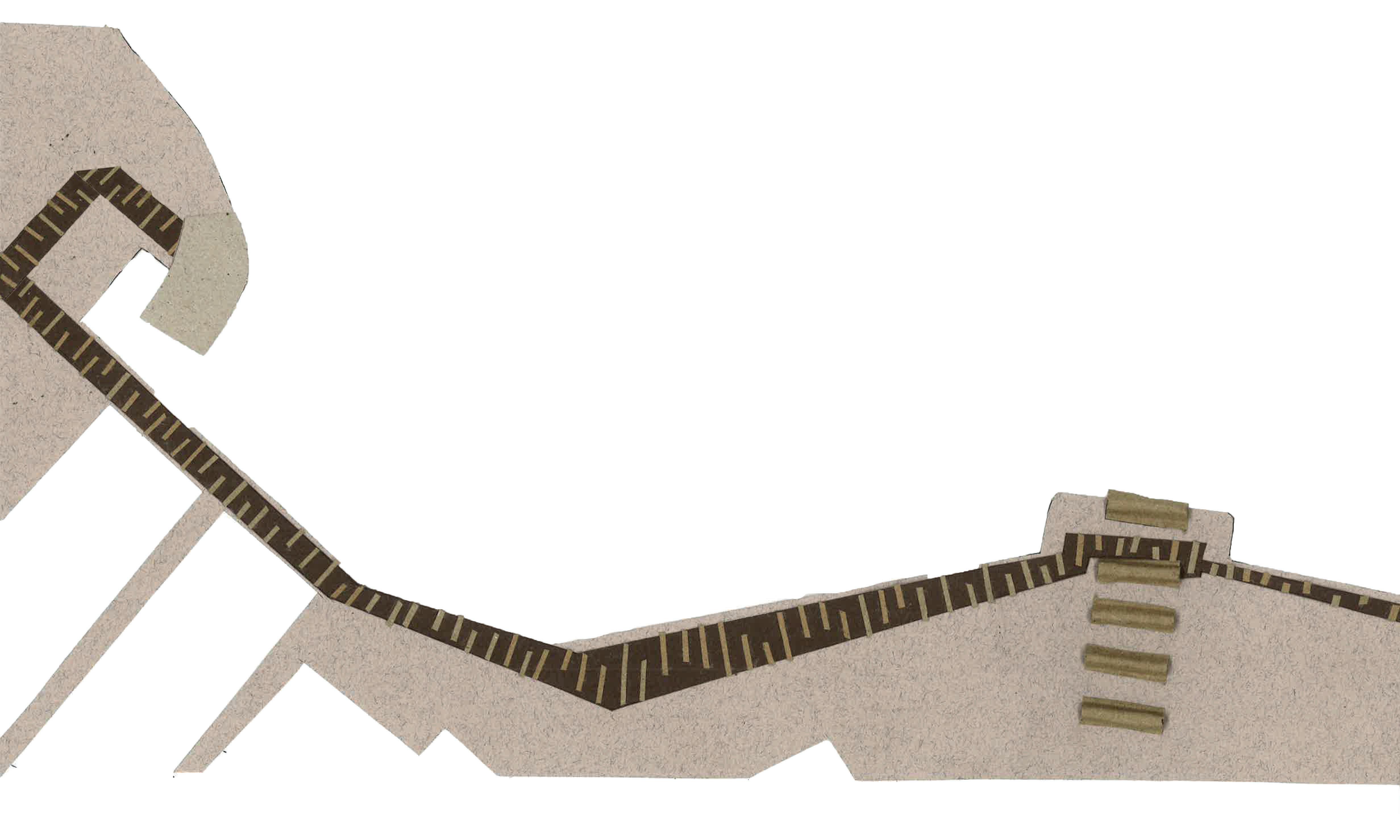 ADALGISA CASSUENDE ARCHITECTURE PORTFOLIO CREEKSIDE UPCYCLING MUSEUM AND FACTORY Initial Massing The idea is to create a journey through the site, immersing the users in these exhibition space full of of sculptures made out of recycled waste collected from the creek