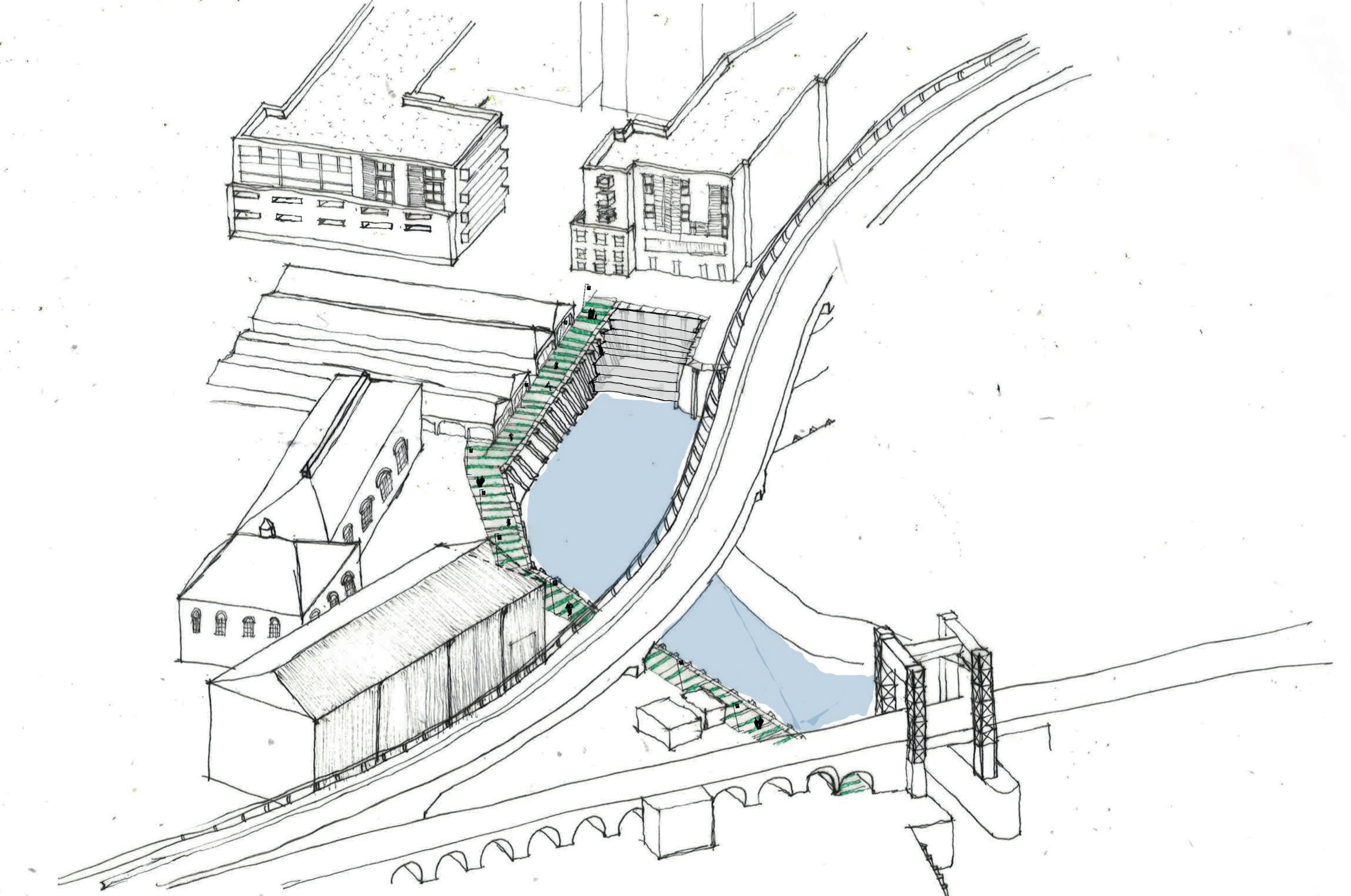 As well as providing a building set within existing physical constraints, the projects consider how people will access the river, proposing a landscape and steps to the river.