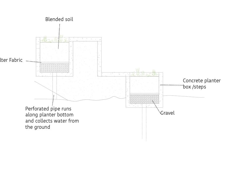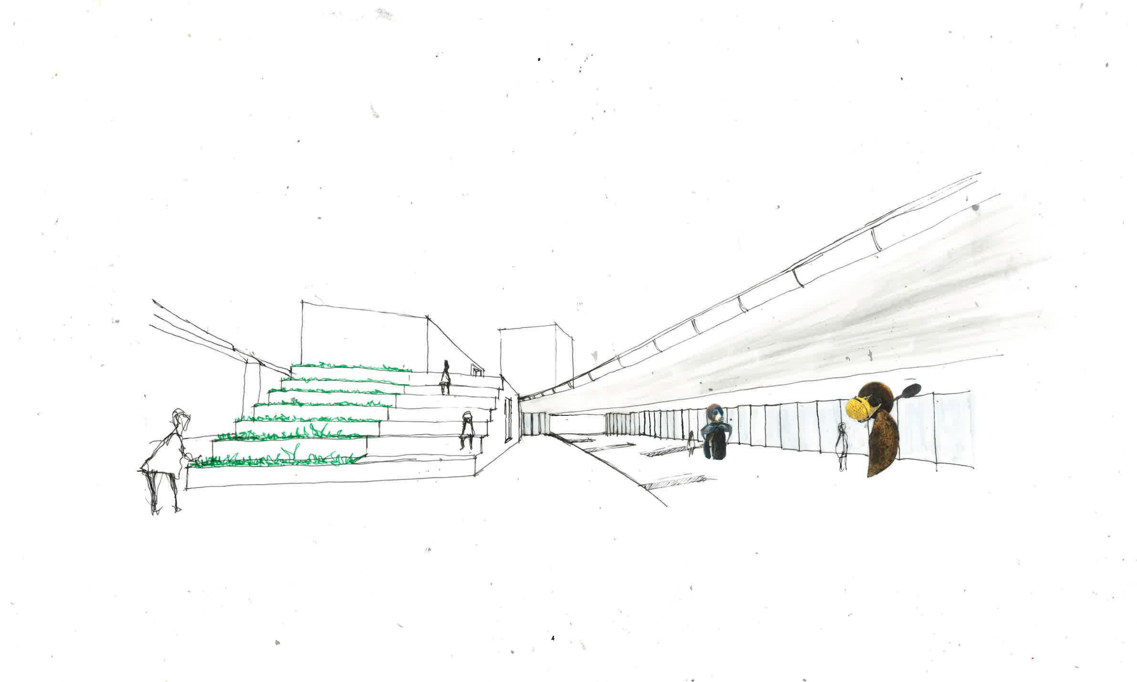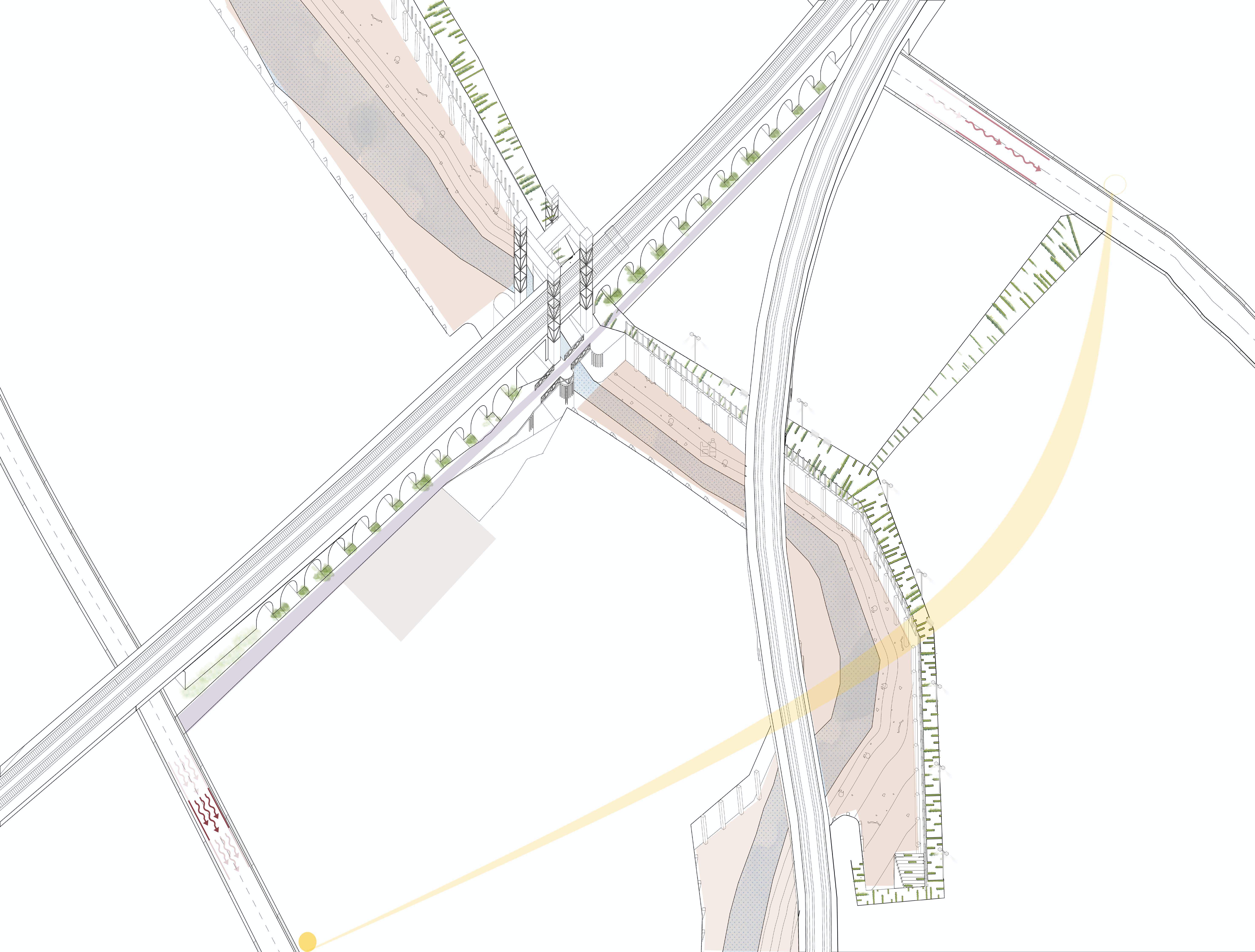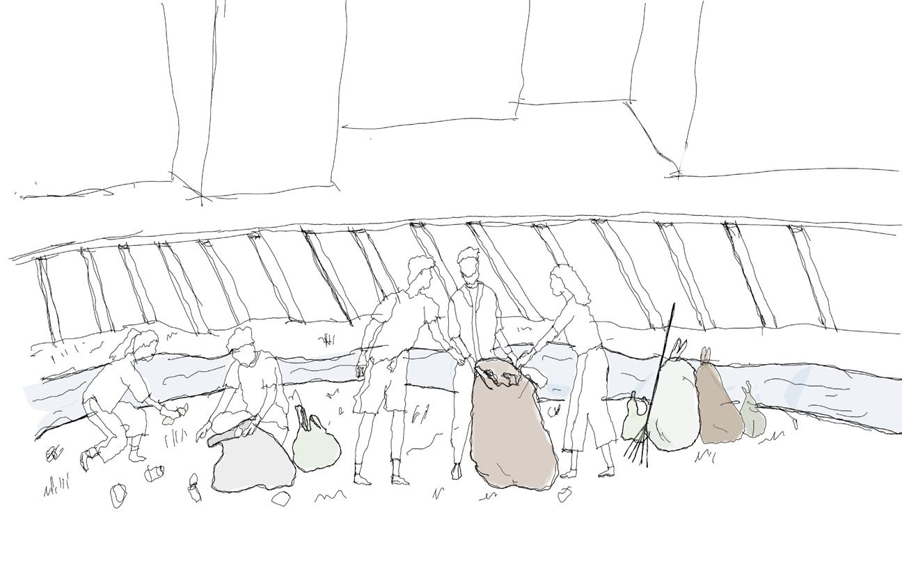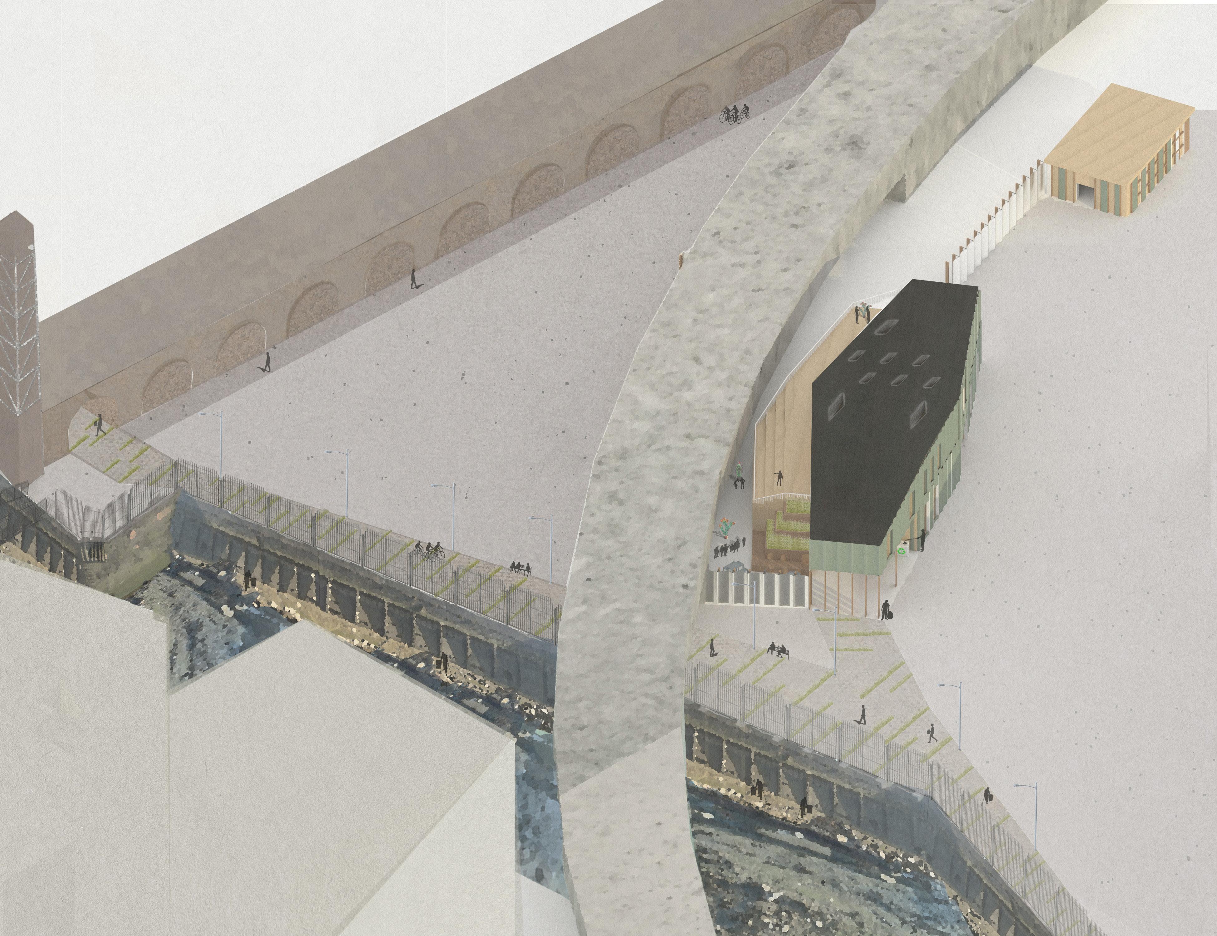 CONCEPTUAL COLLAGE Created initially by hand skecthes and later on refined using Photoshop. ENVIRONMENTAL STRATEGY [Original scale 1:50] ADALGISA CASSUENDE ARCHITECTURE PORTFOLIO CREEKSIDE UPCYCLING MUSEUM AND FACTORY