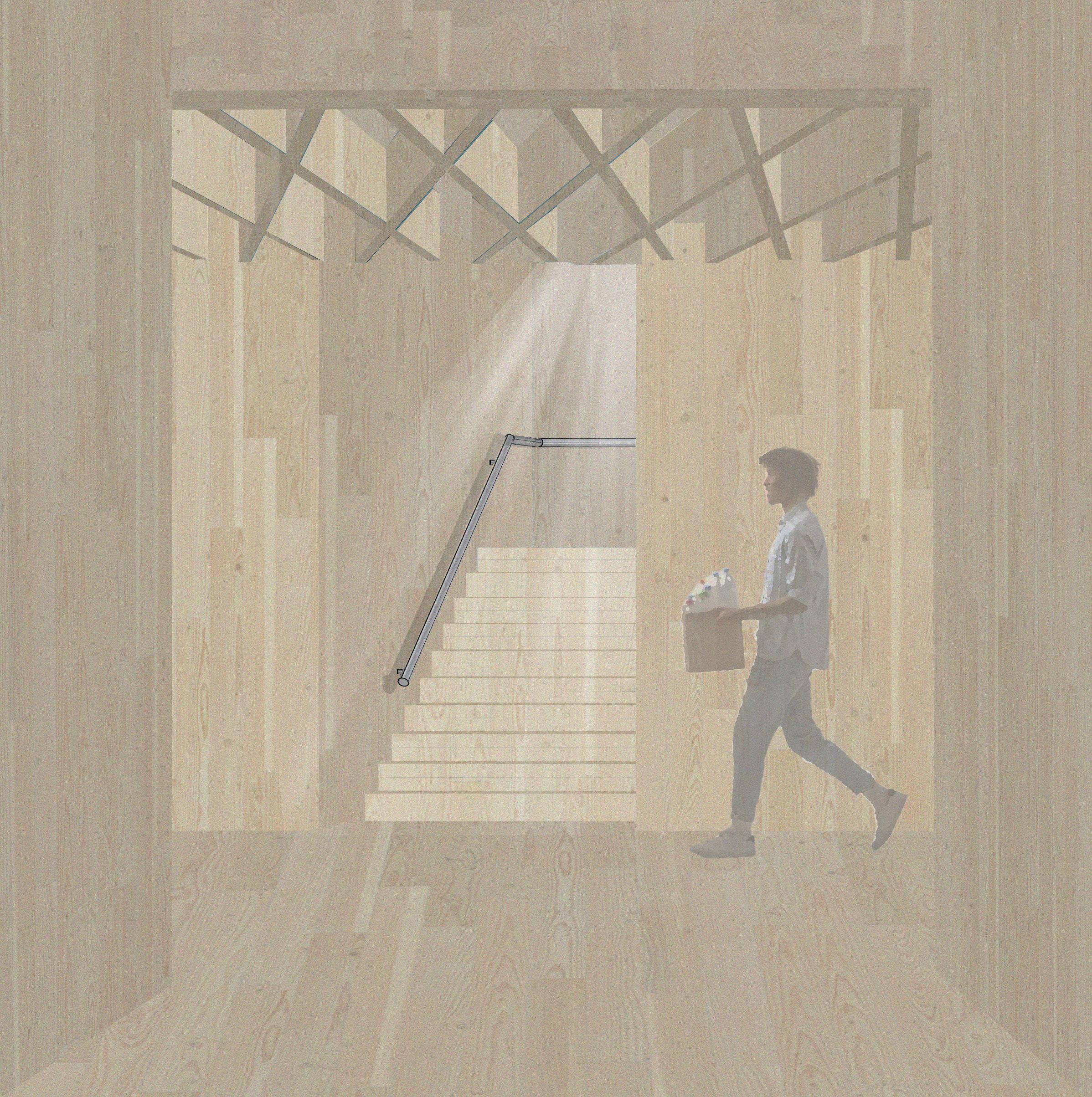 CREEKSIDE UPCYCLING MUSEUM AND FACTORY 2000mm 2000mm 2000mm 1800mm Each panel up to 2000 mm long, having some of them shorter to fit the building grid. Primary Structure Primary Structure Primary Structure Primary Structure Secondary Structure Secondary Structure Tertiary Structure Secondary Structure elegant construction/aesthetic. LVL panels as ceiling elements. LVL panels supporting the stepped ceiling. LVL panels supporting the pitched roof.