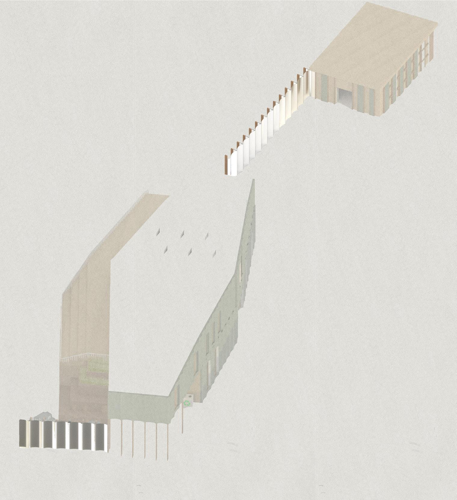 ADALGISA CASSUENDE ARCHITECTURE PORTFOLIO CREEKSIDE UPCYCLING MUSEUM AND FACTORY INITIAL MASSING