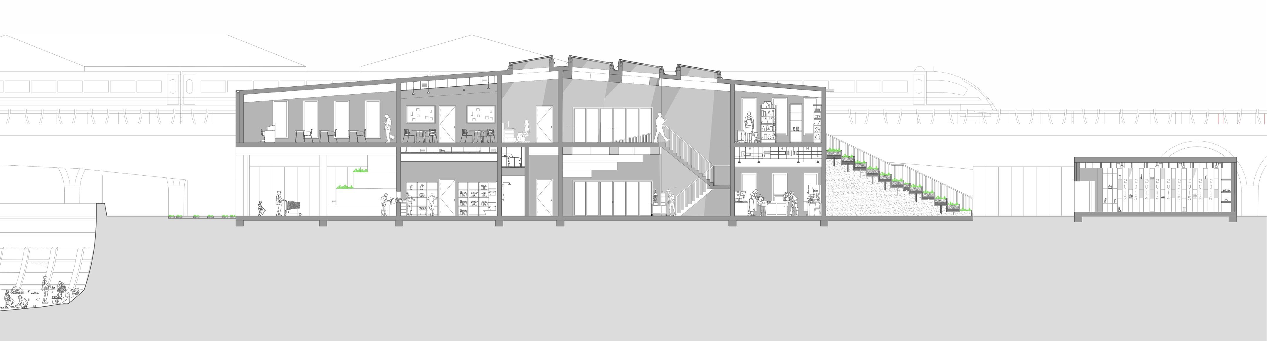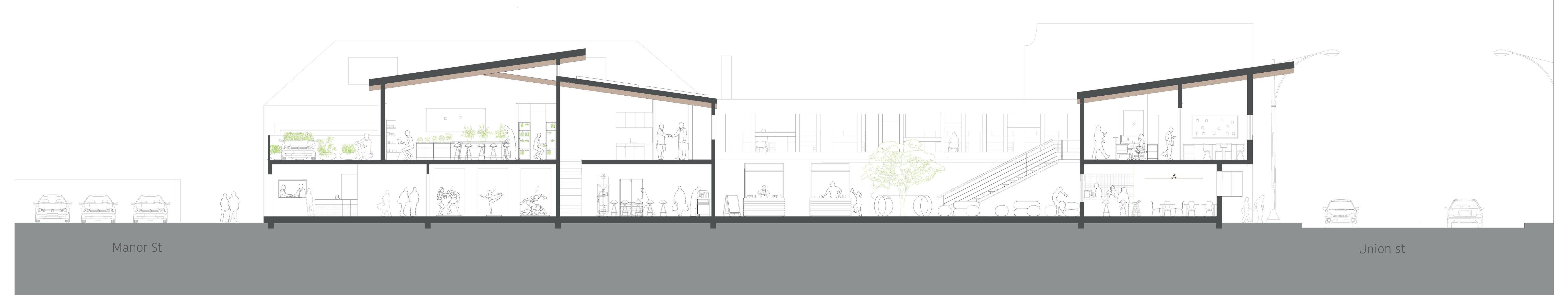 1. Dividing the buildinng into two areas to activate Norman rd, having the exhibition space under the viaduct as the connecter.