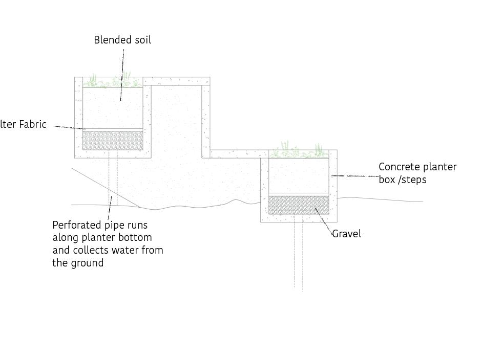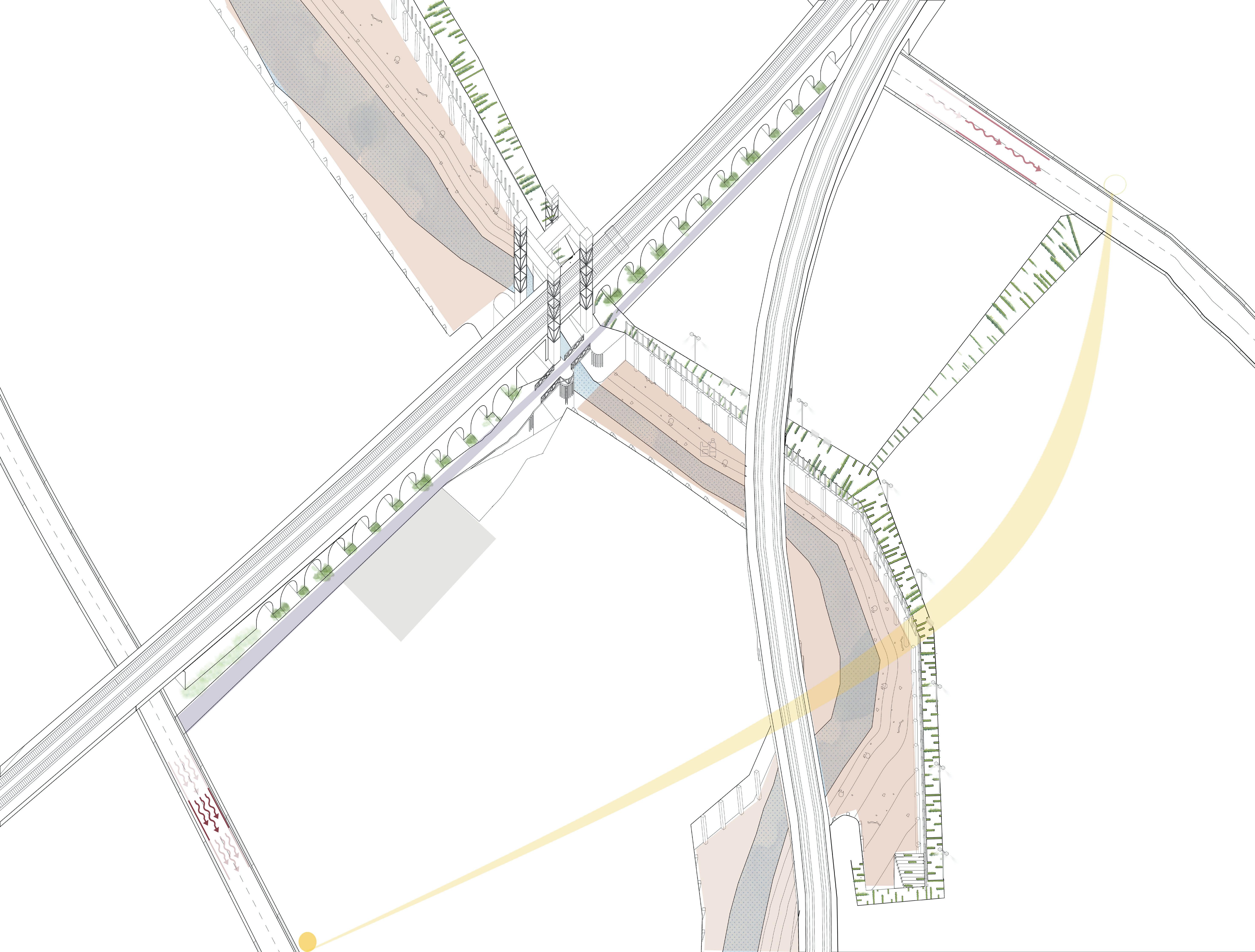 CONCEPTUAL COLLAGE Created initially by hand skecthes and later on refined using Photoshop. ENVIRONMENTAL STRATEGY [Original scale 1:50] ADALGISA CASSUENDE ARCHITECTURE PORTFOLIO CREEKSIDE UPCYCLING MUSEUM AND FACTORY