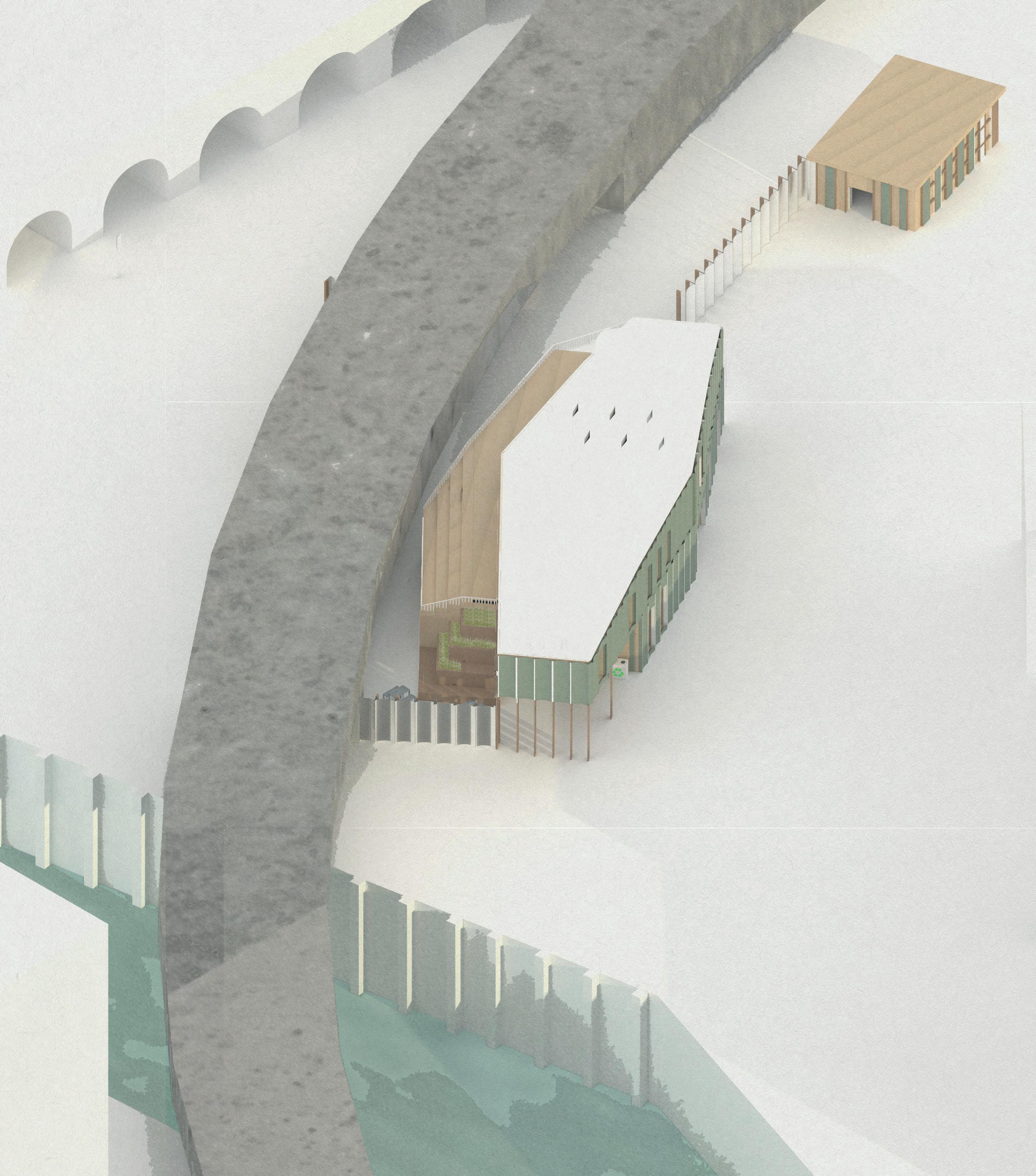 ADALGISA CASSUENDE ARCHITECTURE PORTFOLIO CREEKSIDE UPCYCLING MUSEUM AND FACTORY INITIAL MASSING