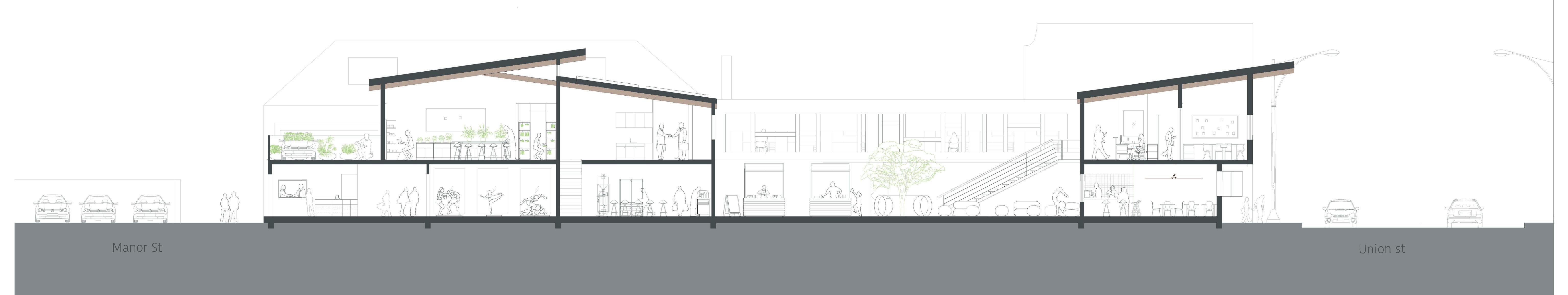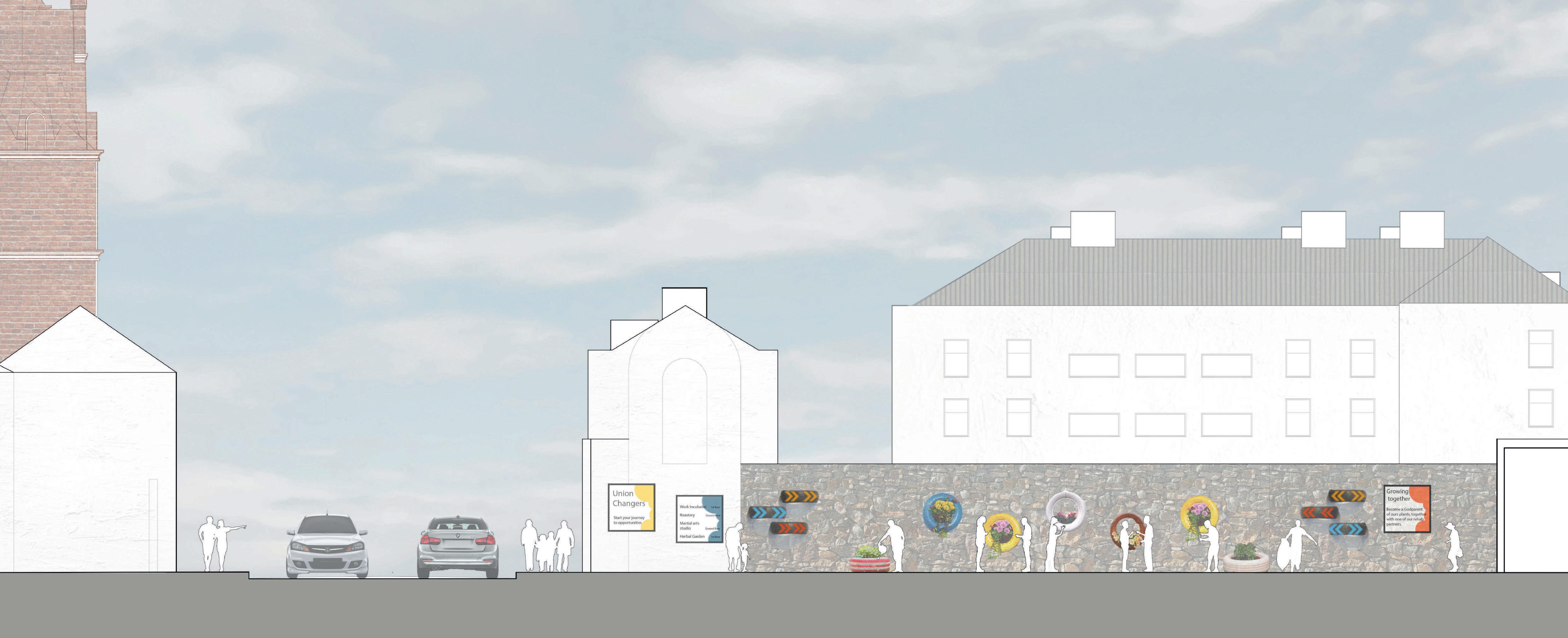 A roastery, martial arts centre, co- working space and herbal garden provide the training and work opportunity that will be the catalyst of social change.
