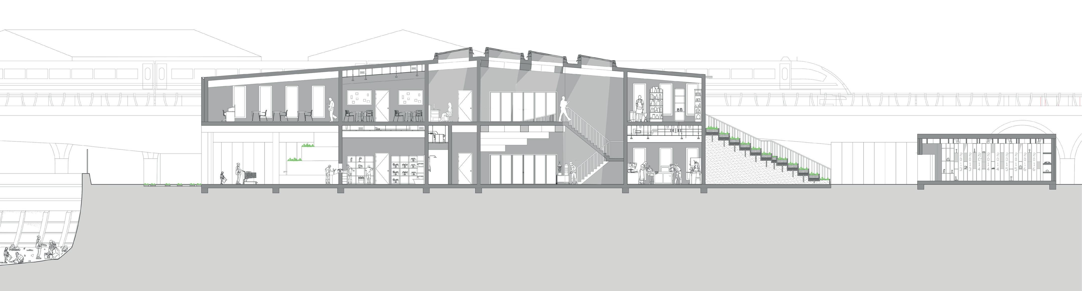 1. Dividing the buildinng into two areas to activate Norman rd, having the exhibition space under the viaduct as the connecter.