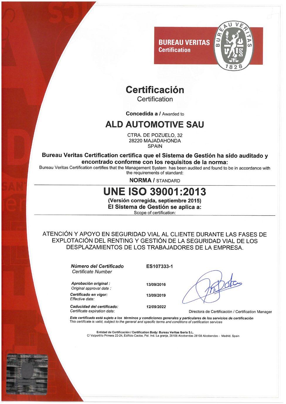 Este documento acredita que ALD AUTOMOTIVE ha sido certificada .