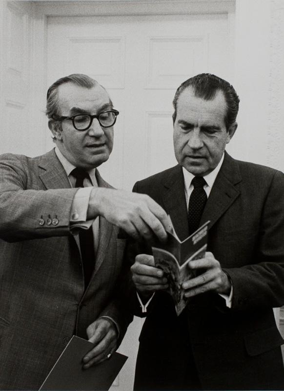 (Left) During the 25th anniversary of D-Day, journalists, like Cornelius Ryan pictured here, met with President Nixon as a memorial to Gen. Dwight Eisenhower and the troops who landed at Normandy Beach.