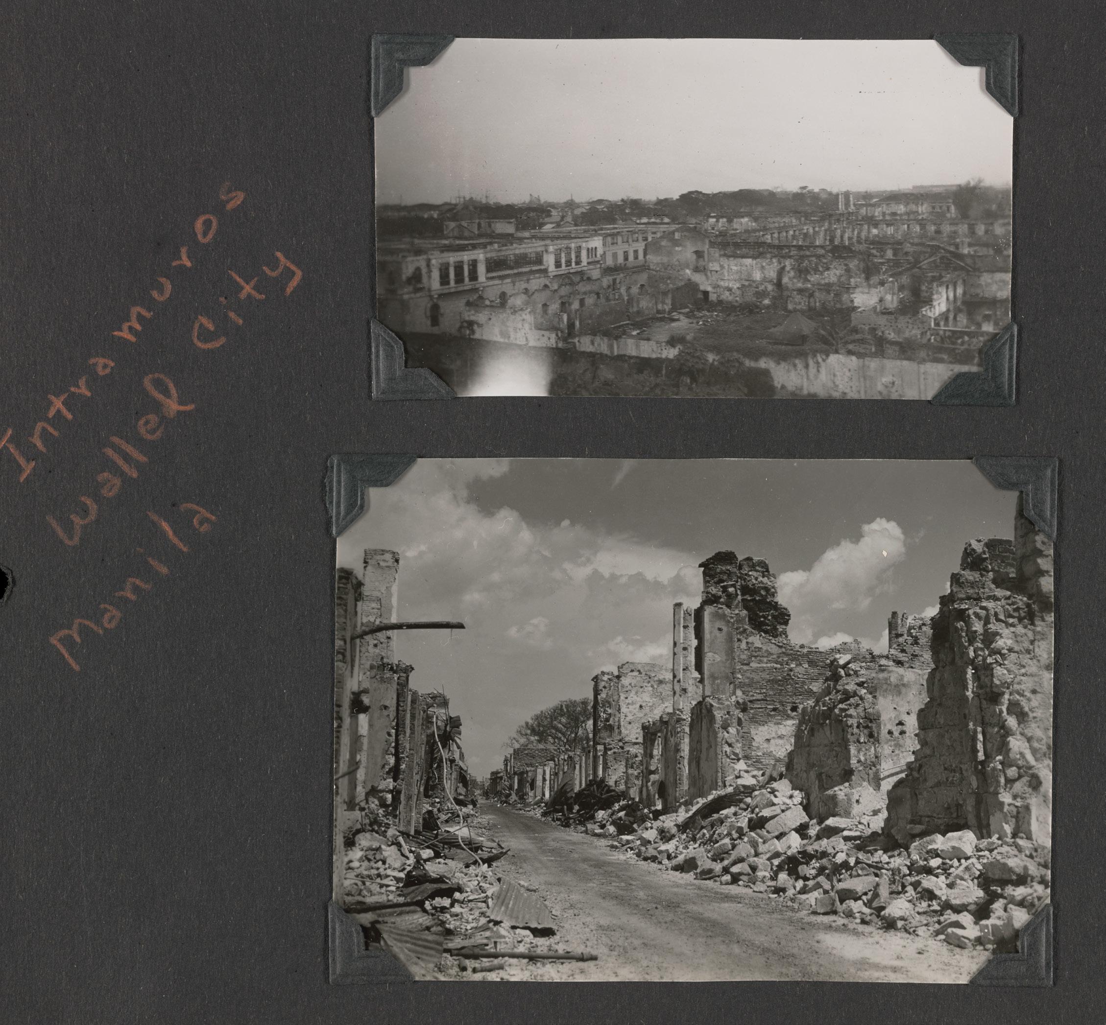 Peirce’s multiple scrapbooks and correspondence in the collection give a small glimpse of the destruction seen while serving in the U.S. military, which is demonstrated in these two stacked images.