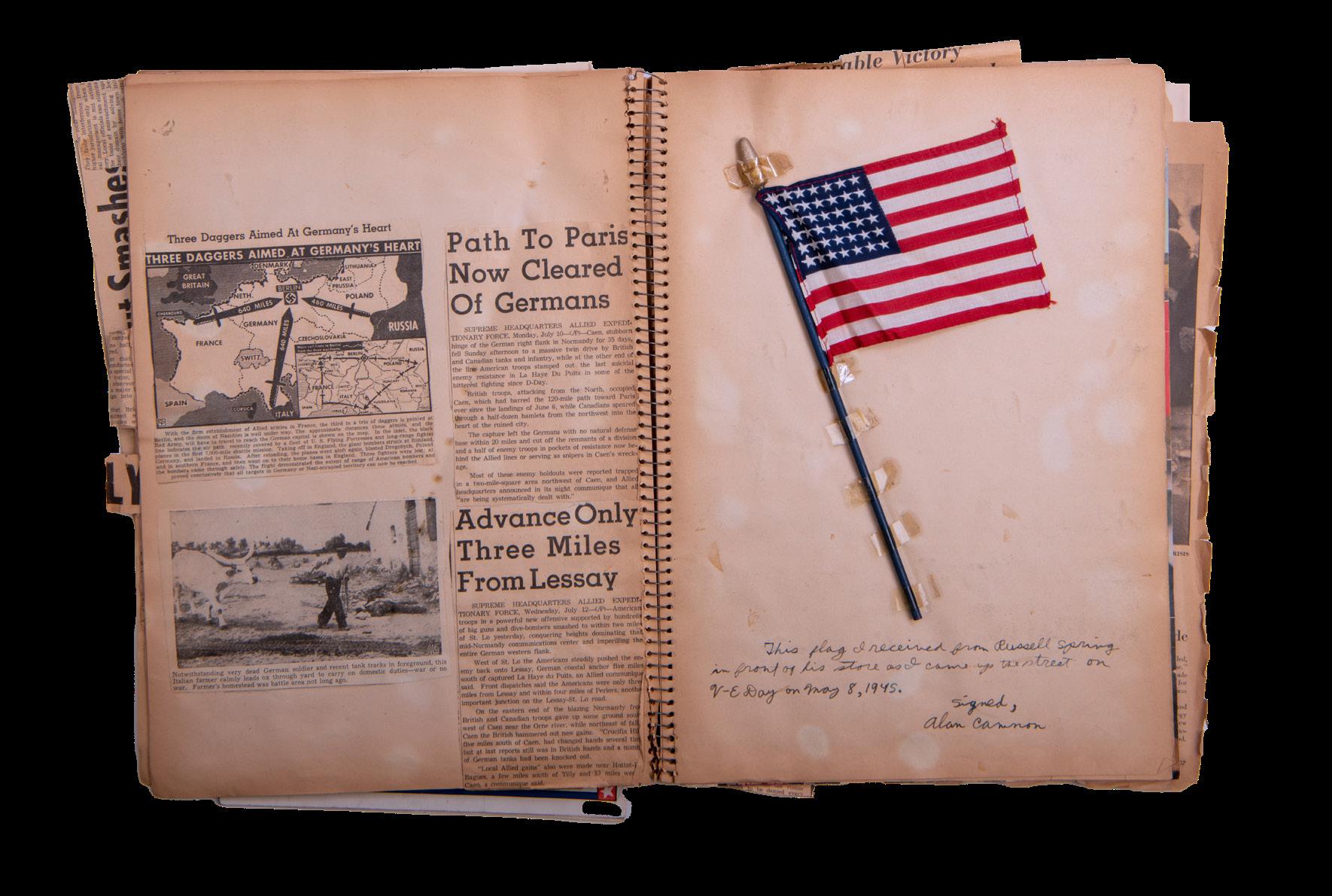 During World War II, everyone wanted to be involved with the war effort. On the home front, one way to express that need was collecting news clippings in scrapbooks. Pictured are scrapbook pages compiled by 10-year-old Allan Cannon.