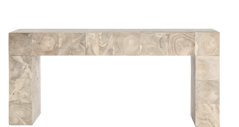 The Anders Teak Console brings minimalist warmth with its natural grain, paired with Adria Alabaster Cordless Lamps for an effortlessly organic touch.