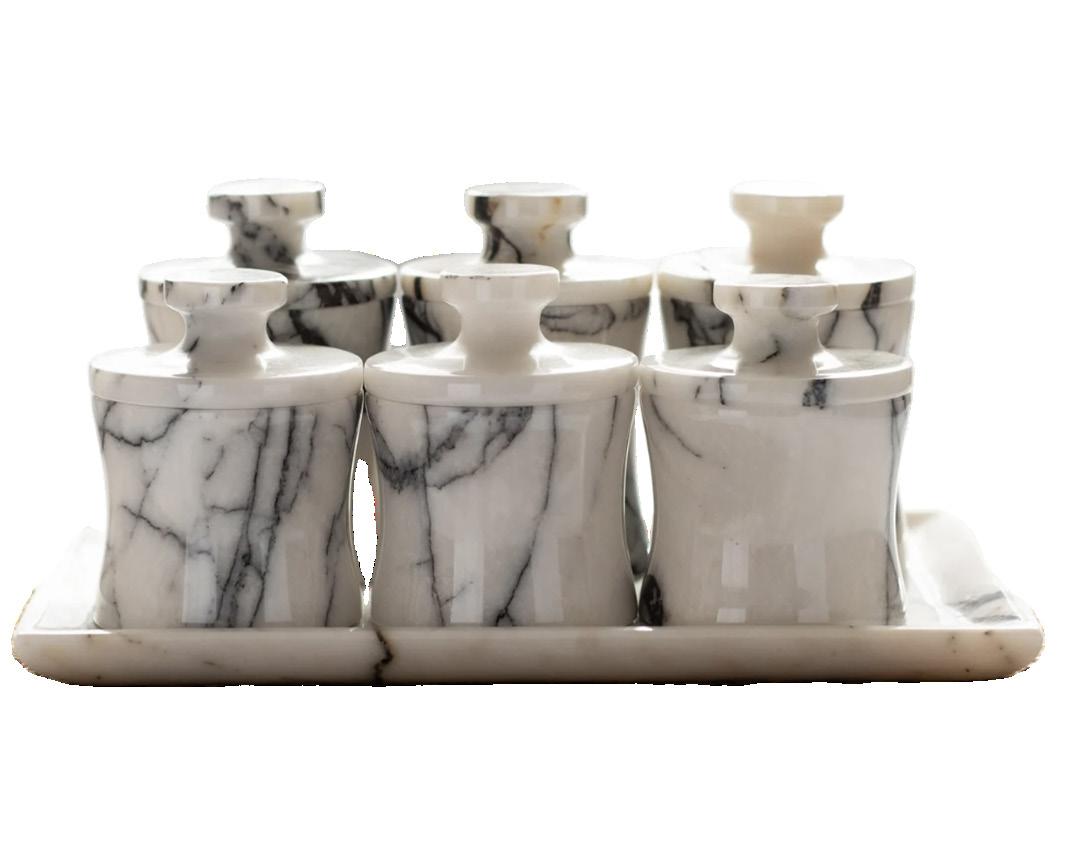 The La Dolce Vita Collection embraces a more vibrant, expressive sensibility. Saturated hues—burnt orange, citrine, emerald, and cerulean—are paired with grounded neutrals and sculptural forms for a collected, worldly feel. This grouping is bold yet polished, ideal for those drawn to color, contrast, and curated maximalism.
