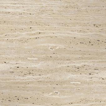 A custom travertine console pairs seamlessly with a luxe lamp from Palecek, featuring a handcut coconut shell base in a soft cream finish and a white linen drum shade.