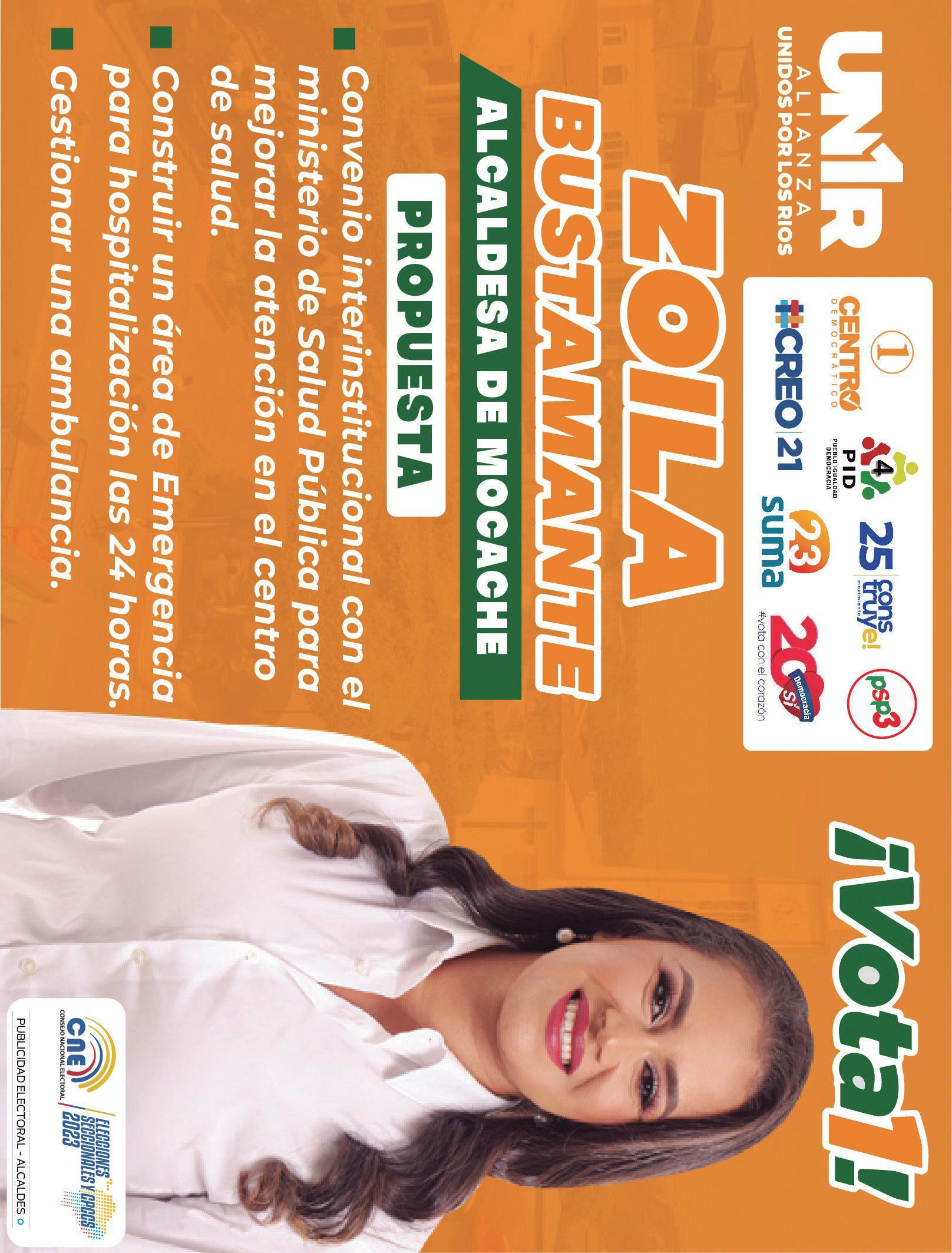 Yenny Domínguez, postula para la Alcaldía del cantón Mocache por la lista RC-5. Una de sus propuestas es construir un hospital del día esto con la ayuda de la fundación Daniel Arroyo. La candidata indicó que el hospital atenderá las emergencias médicas de los ciudadanos del cantón, para que esto funcione se ha comprometido hacer un convenio entre el municipio y la fundación Daniel Arroyo.