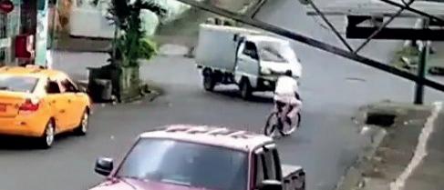 Un hombre que manejaba una bicicleta por una intersección vial en la parroquia Siete de Octubre fue víctima de un siniestro de tránsito. El afectado fue golpeado por la parte frontal de un furgón, cuyo conductor dobló en la intersección de manera precipitada. Cuando ingresaba a una calle se ‘llevó’ al ciclista, posteriormente se estrelló contra un taxi que se encontraba estacionado en el exterior de una vivienda. Tras el fuerte estruendo ocasionado por el atropello y estrellamiento, vecinos del sector acudieron a socorrer al ciclista, quien quedó sobre la vereda afectado por las lesiones de la fuerte embestida. Tras el accidente, el conductor del camión logró darse a la fuga, dejando enfurecidos a muchos vecinos del sector. El accidente de tránsito quedó registrado por cámaras de seguridad del lugar donde ocurrió el suceso.