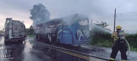 Producto del violento accidente, el transporte interprovincial Sucre, ardió en llamas, lo que llamó la atención de los moradores y desesperó a muchos de ellos, por lo que acudieron a llamar al personal del Cuerpo de Bomberos de Buena Fe, que llegó inmediatamente al lugar para sofocar las llamas del automotor.