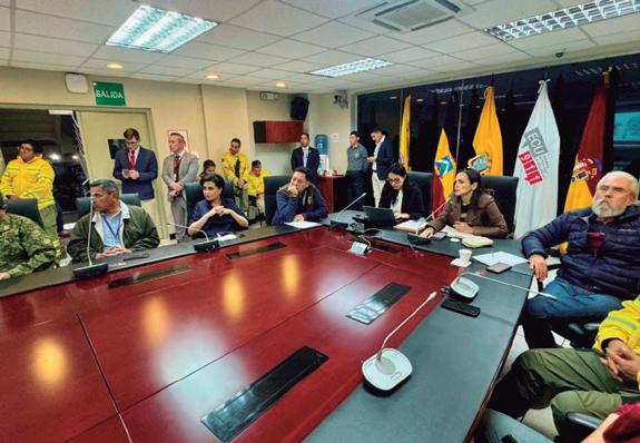 El viernes, 15 de noviembre, el Comité de Operaciones de Emergencia (COE) Nacional, se reunió en el ECU911 de Cuenca para evaluar la situación crítica de los incendios forestales que afectan a la ciudad y a la provincia. La sesión, que fue convocada de manera urgente, contó con la participación de la ministra de Energía y Minas (e), Inés Manzano, quien preside el COE Nacional, así como el gobernador de Azuay, y el alcalde de Cuenca, Cristian Zamora. En su cuenta oficial de X, el Cuerpo de Bomberos de Cuenca informó sobre la instalación del COE Nacional