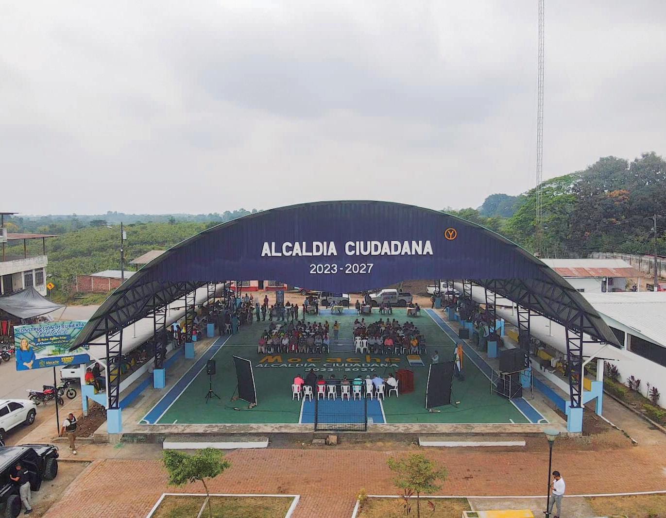 MOCACHE. La alcaldesa, Ab. Yenny Domínguez y un grupo de concejales inauguraron la nueva Cubierta Metálica de la cancha deportiva del Rcto. Aguas Frías. Este evento se llevó a cabo el viernes 16 de agosto, después de la Sesión de Concejo Itinerante y se realizó atención ciudadana, charla educativa a jóve-