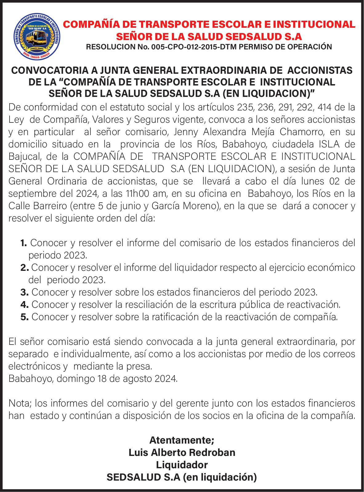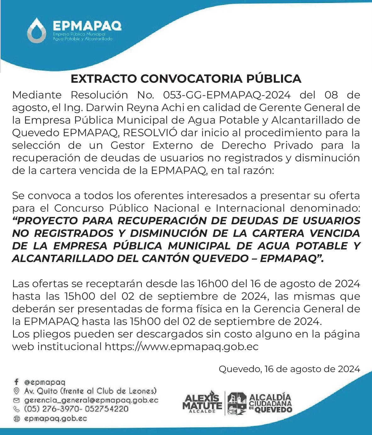 Los Ríos, Lunes, 19 de agosto 2024 Contáctanos 0997151726 - 0979639681