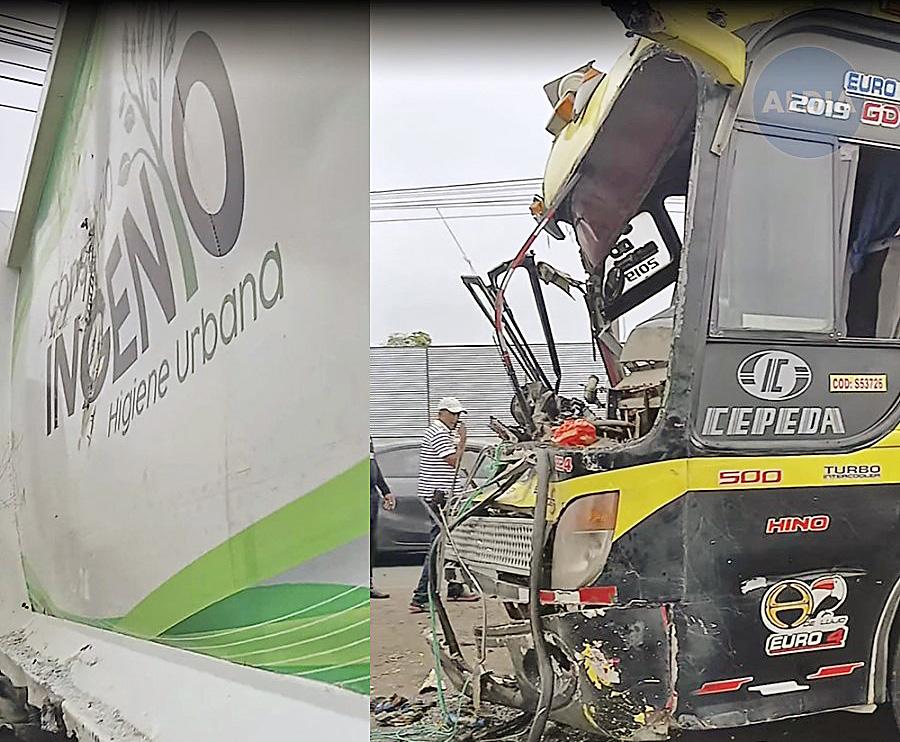 Luego de la colisión, el conductor del bus quedó atrapado y otra persona apareció debajo del camión recolector; de quienes se desconoce los nombres, sólo se conoce que ambos fueron trasladados por los bomberos hasta una casa de salud. El accidente se produjo alrededor de las 06:00, cerca del distribuidor del anillo vial en la vía a Buena Fe, en circunstancias que el bus recorría en su recta, de pronto fue sorprendido por un giro en U inesperado de un recolector de desechos de la empre-
