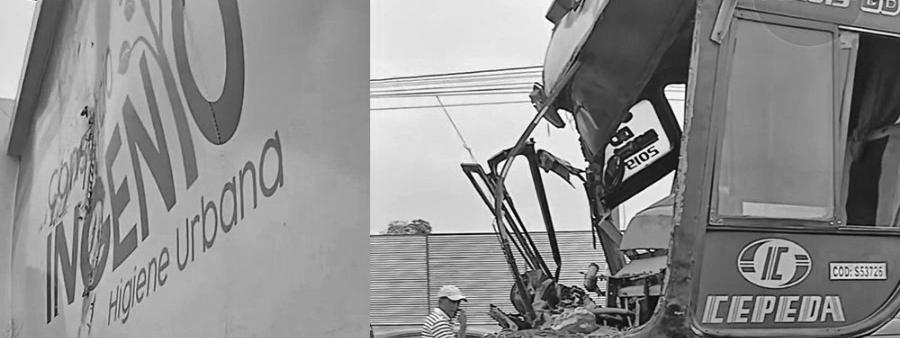 Bus impacta contra camión de basura y deja heridos al conductor y ciudadano